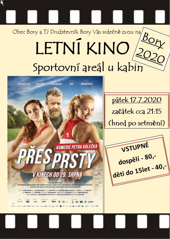 Obec Bory a TJ Družstevník Bory vás zvou na letní kino do sportovního areálu u fotbalového hřiště.