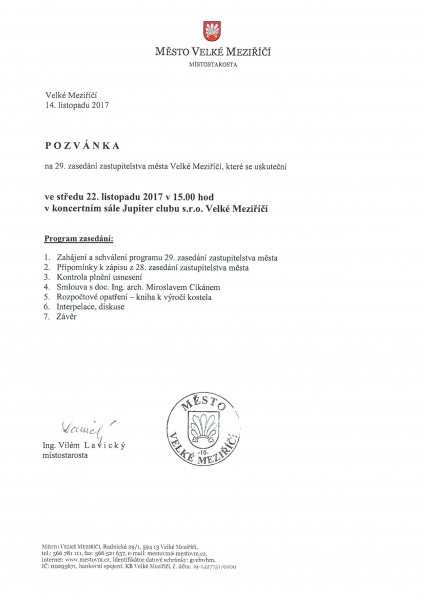 Na programu např. kontrola plnění usnesení, smlouva s doc. Ing. arch. Miroslavem Cikánem, rozpočtové opatření