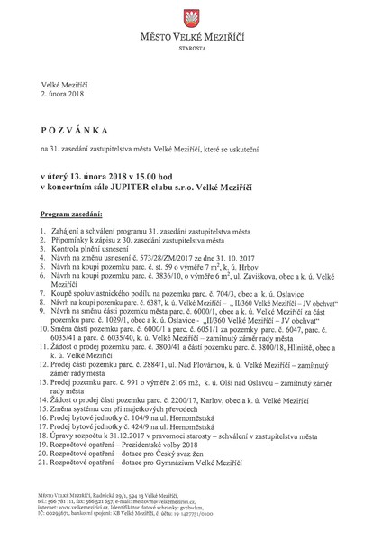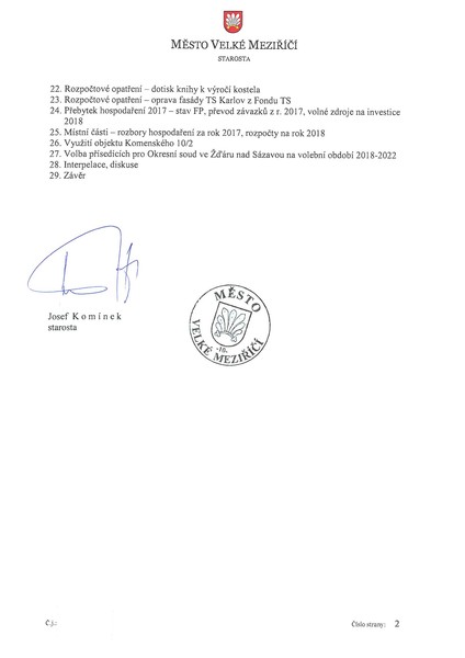 Na programu: nákup a směna pozemků, rozpočtová opatření, rozbory hospodaření za rok 2017, využití objektu Komenského 10/2.