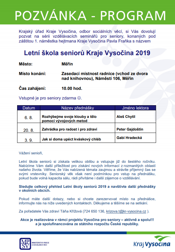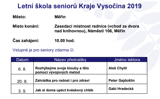 Letní škola seniorů Kraje Vysočina 2019 - Zahrádka pro radost i pro zdraví