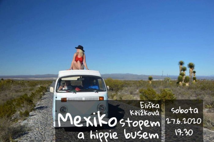 Přednáška Elišky Křížkové o tom, jak přežít se stovkou na den. O tom, jak se dá spát na pyramidě, anebo na území jaguárů. O jídle plném chilli, stopování, vydělávání si hraním na ulici, nebo jako řezník na trhu. O nádherné mexické přírodě a srdečných domorodých kmenech. A v neposlední řadě tom, že sny jako koupení si a cestování v hippie busu, se mají plnit!