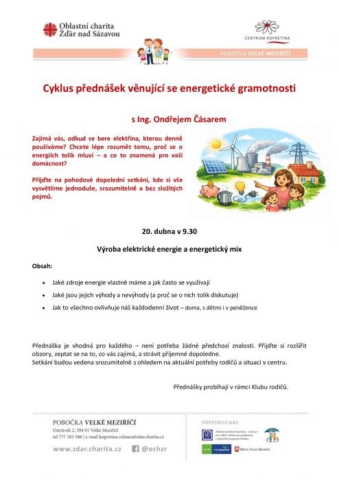 Zajímá vás, odkud se bere elektřina, kterou denně používáme? Chcete lépe rozumět tomu, proč se o energiích tolik mluví - a co to znamená pro vaši domácnost? Pak je tato přednáška s Ing. Ondřejem Čásarem právě pro vás.