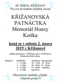 Pořádá HC SOKOL Křižanov, začátek prezentace v 10 hodin, start v 11:00 na fotbalovém hřišti u školy.