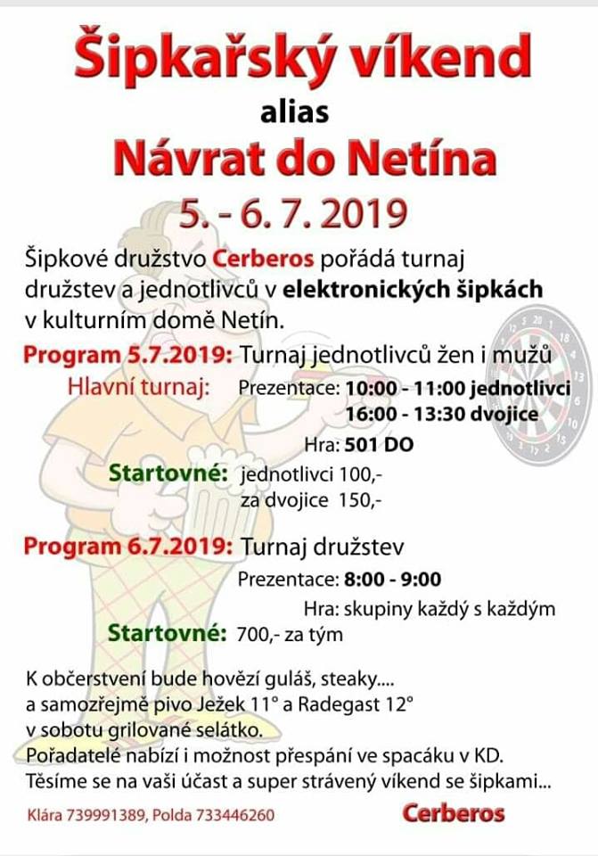 Šipkový turnaj jednotlivců a dvojic, který se opět po letech vrací do obce, kde vznikl Cerberos.