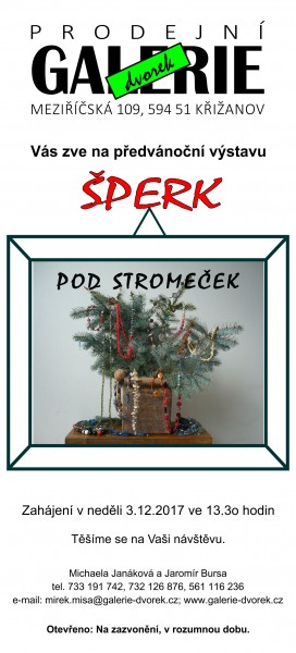 Vystaveny budou šperky od 10 výtvarníků, resp. 8 výtvarnic a 2 výtvarníků, dále keramické a dřevěné plastiky, keramika, obrázy, paní Žáčková - výtvarnice z Brna - vystaví skleněné - vitrážové betlémy.