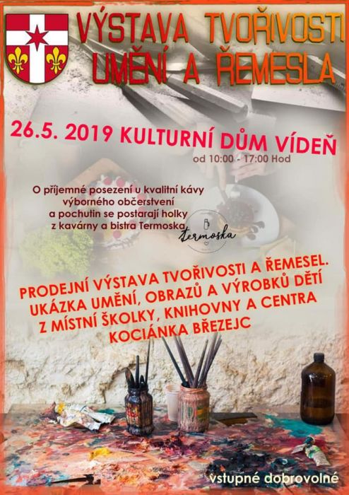 Opět po roce se v naší malebné vesničce Vídeň uskuteční - Prodejní výstava tvořivosti, řemesel, ukázka umění, obrazů a výrobků dětí z místní mateřské školky, knihovny a centra Kociánky Březejc....