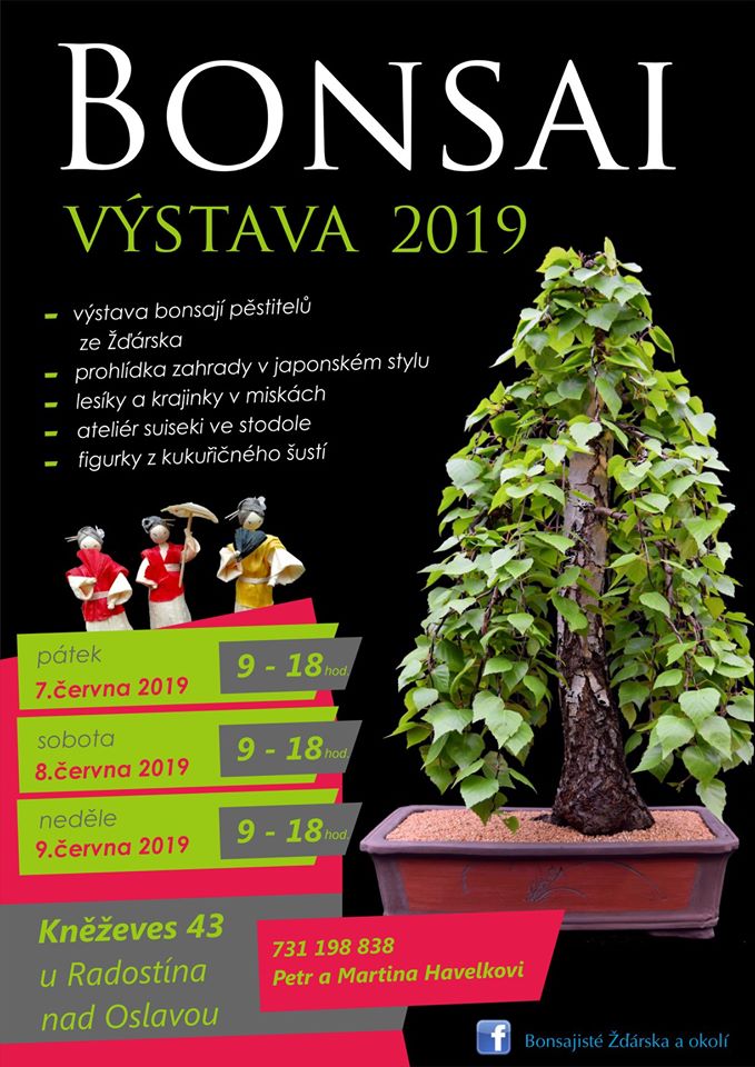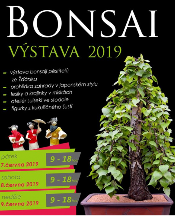 Výstava pěstitelů bonsají. Prohlídka zahrady v japonském stylu.