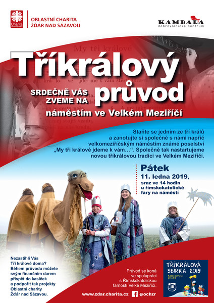 Staňte se jedním ze tří králů a zanotujte si společně s námi napříč velkomeziříčským náměstím známé poselství "My tři králové jdeme k vám..." Společně tak nastartujeme novou tříkrálovou tradici ve Velkém Meziříčí.