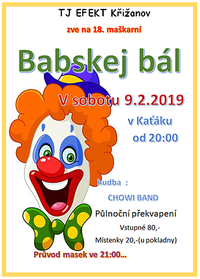 Půlnoční překvapení, vstupné 80 Kč, místenky 20 Kč (u pokladny). Průvod masek ve 21:00.