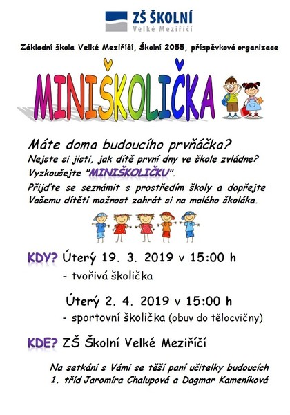Máte doma budoucího prvňáčka? Přijďte se seznámit s prostředím školy a dopřejte vašemu dítěti možnost zahrát si na malého školáka.