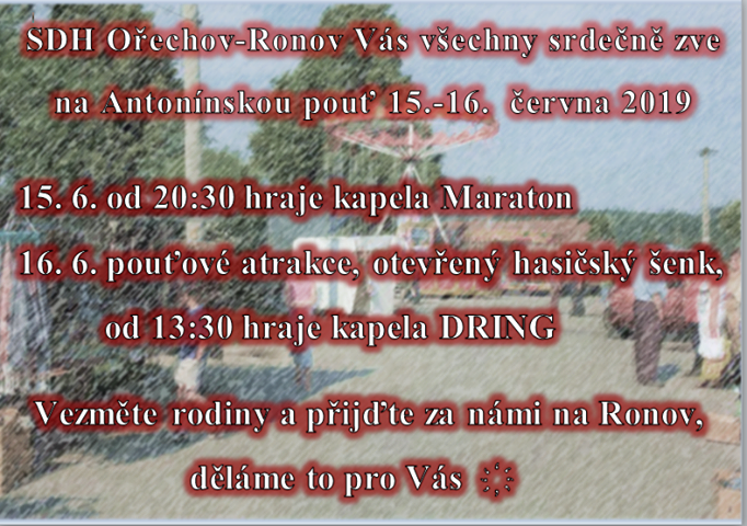 SDH Ořechov-Ronov Vás zve na Antonínskou pouť 15.-16.6.
