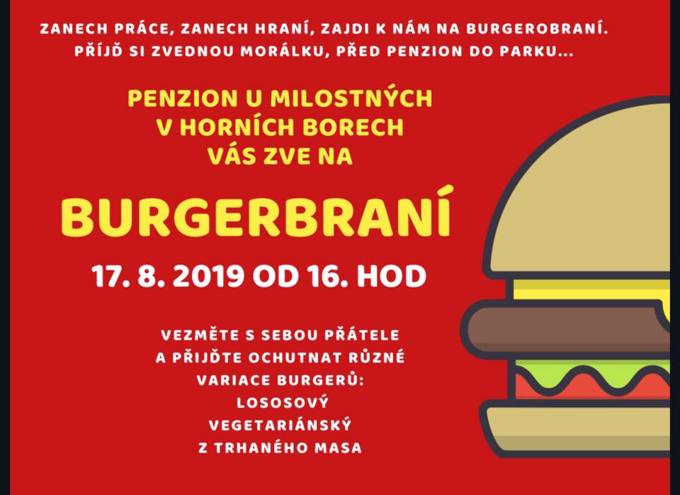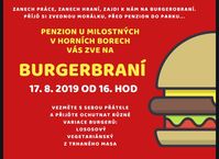 Zveme Vás na I. BURGERBRANÍ, které se uskuteční 17. 8. 2019 v parku u penzionu U Milostných.