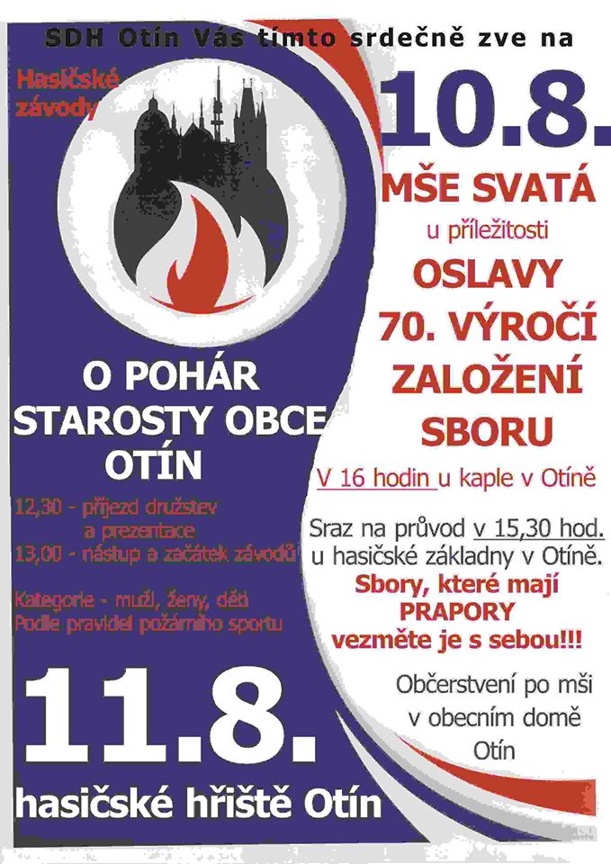 SDH Otín Vás tímto zve na hasičské závody O pohár starosty obce Otín.