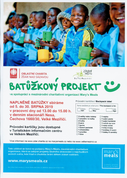 NAPLNĚNÉ BATŮŽKY sbíráme od 5. do 30. SRPNA 2019 v pracovní dny od 13.00 do 15.00 h. v denním stacionáři Nesa, Čechova 1660/30, Velké Meziříčí.