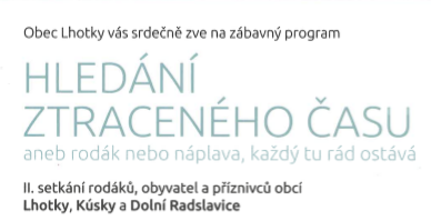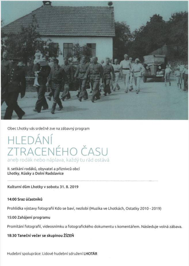Sejdeme se v sobotu 31.srpna 2019 ve 14 hodin v kulturním domě ve Lhotkách