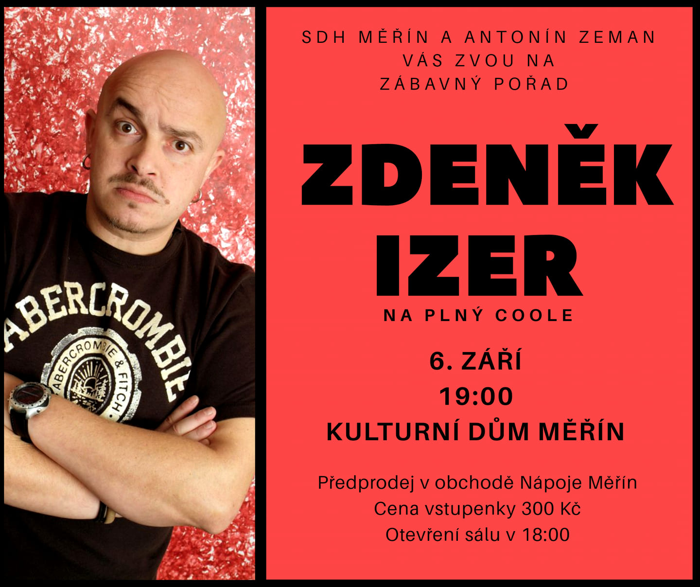 Do Měřína zavítá bavič a imitátor Zdeněk Izer se svým zábavným pořadem "Na plný coole".PŘEDPRODEJ bude zahájen 1. DUBNA v prodejně Nápoje Měřín (Náměstí 112 Měřín).