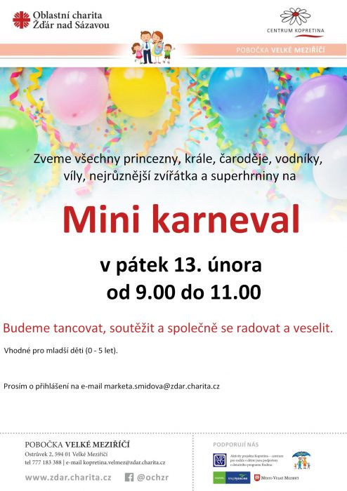 Zveme všechny princezny, krále, čaroděje, vodníky, víly, nejrůznější zvířátka a superhrdiny na Mini karneval.