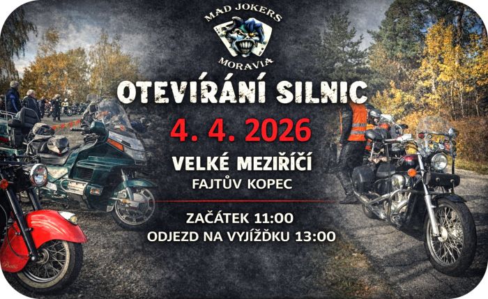 Všichni jste srdečně zváni na Otevírání silnic. Začátek v 11 hod. Odjezd na vyjížďku ve 13 hod.